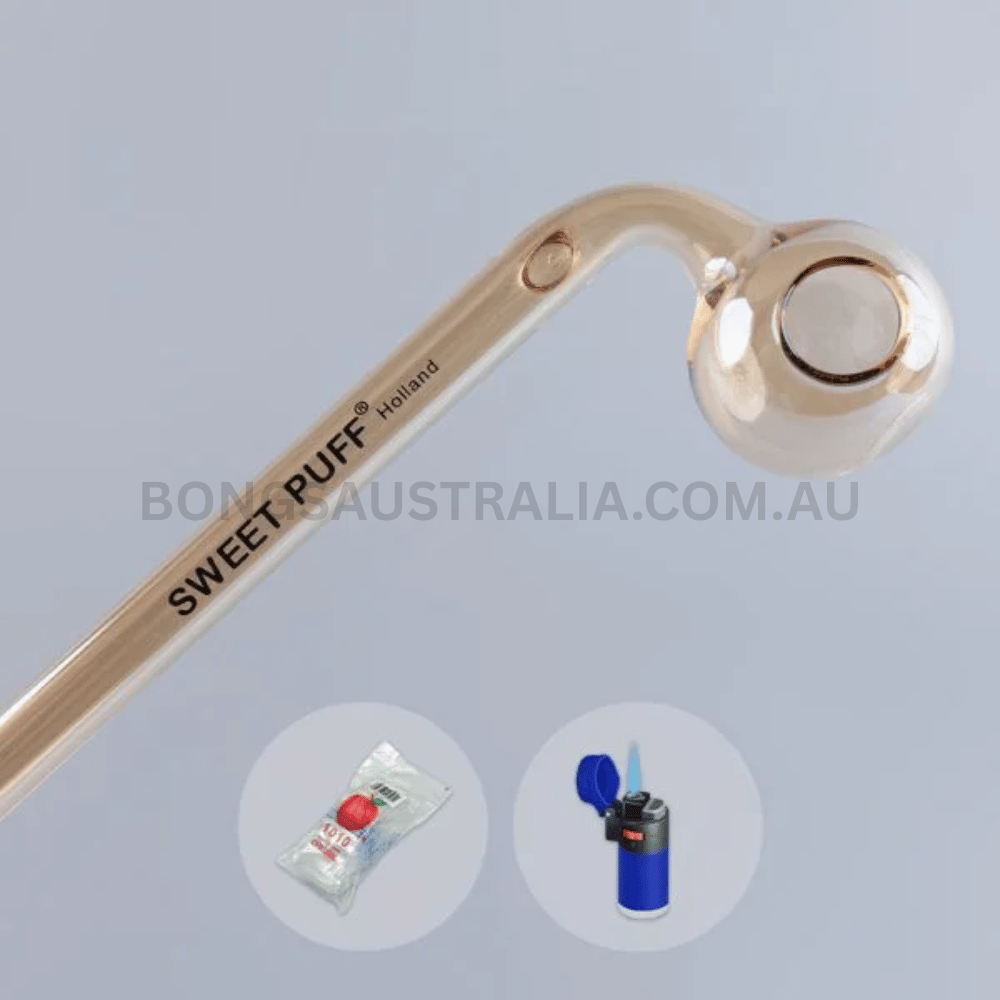 Be the first to review “Curved Sweet Puff Glass Pipe Gold Balancer Combo X2 14cm”