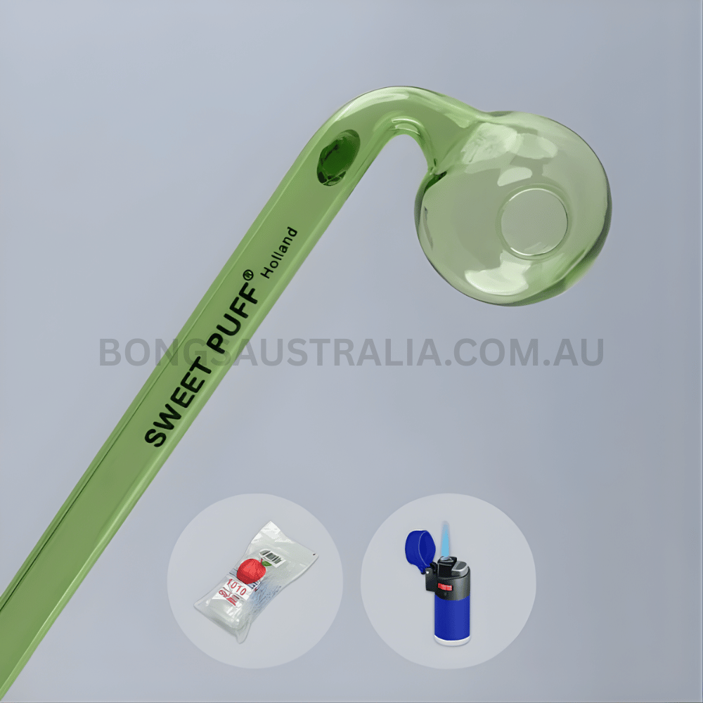 Curved Sweet Puff Glass Pipe Green Balancer Combo X2 14cm