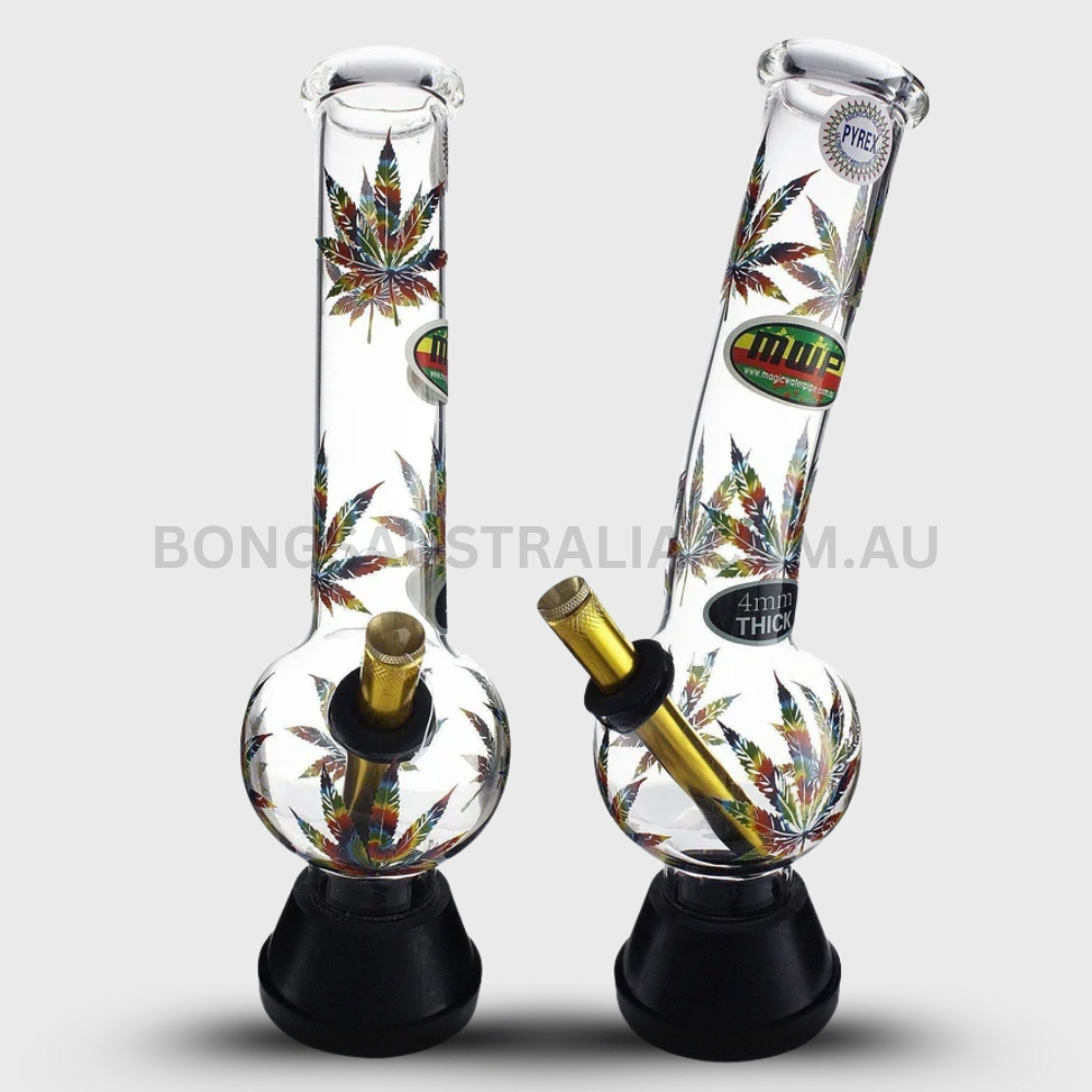 MWP Large Leaf Design Bubble Glass Bong Multicolour 30cm